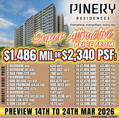 With its strong location, future investment potential, and the developers established track record in quality projects, Pinery Residences is set to become a standout condominium choice in District 18.